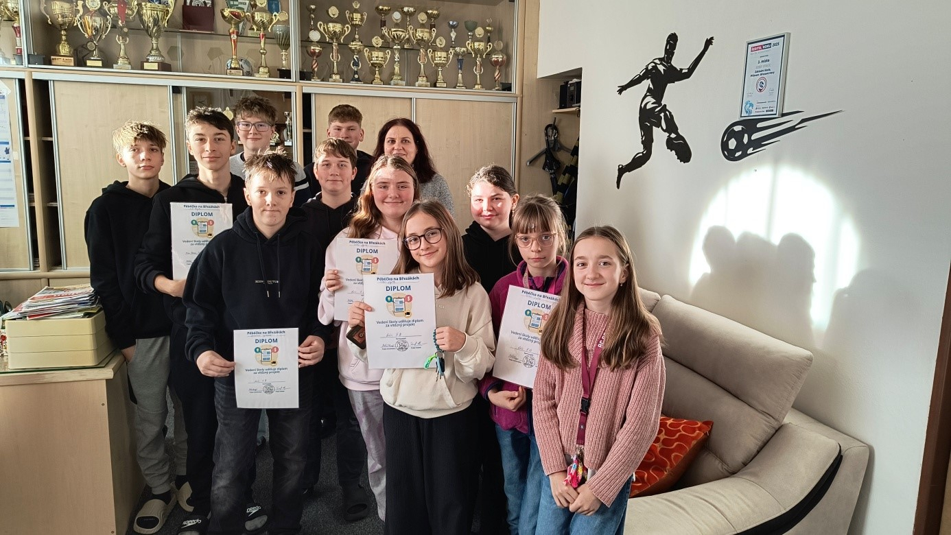 Žáci s diplomem za vítězný projekt. Foto: ZŠ Březové Hory