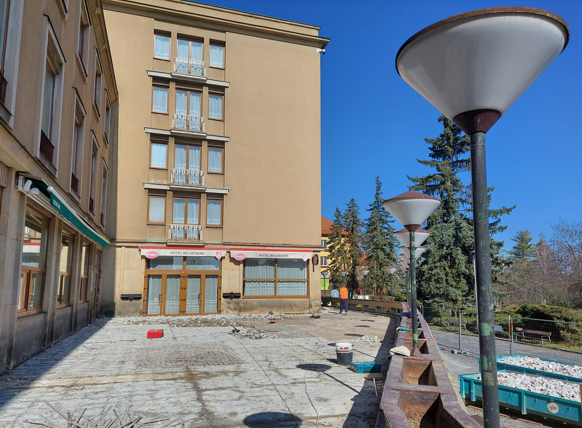 „Při rekonstrukci nepůjde pouze o výměnu povrchu terasy, ale o obnovu veškerých podkladových vrstev, hydroizolace, upraveno bude vyspádování terasy. Zrekonstruováno bude osvětlení, truhlíky na květiny a opraveny či vyměněny budou také všechny pískovcové prvky včetně obkladových desek,“ řekl starosta Jan Konvalinka.